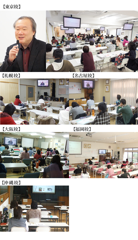 今日は、産婦人科医の池川先生によるCHhom1期生2期生3期生の「ホメオパシー助産学①」の合同授業授業が、東京校から各校を中継で繋いで行われました。