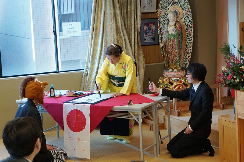 まず、とらこ先生が今年の年賀状に込めた意味と書き初めに込めた言葉の意味についての深い解説を行いました。
