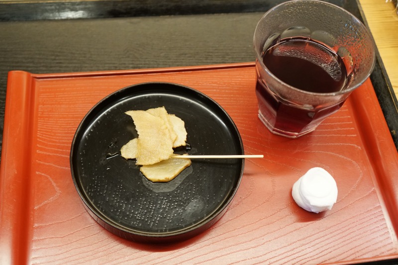 本日のおもてなし(黒米茶と菊芋有機漬)