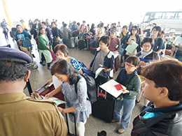 同日午前10時過ぎ、国内線出発前に全体ミーティング。