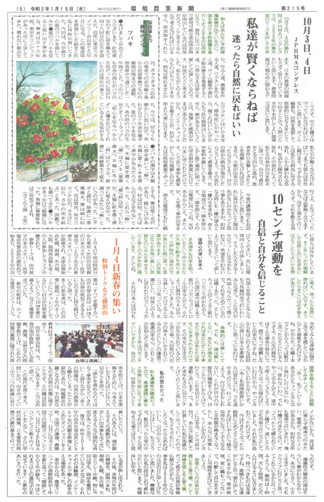 1/15環境農業新聞に掲載されました。-第20回記念JPHMAコングレス/とらこ先生新春特別トーク- 2020年1月28日 メディア掲載| 画像クリックで拡大します。 記事をダウンロード(PDF645KB)>> 第20回コングレスサイト>> 「とらこ先生の新春特別トーク」の記事も掲載されました。 記事をダウンロード(PDF1.8MB)>>