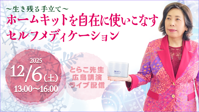 【講演会レポート】12/6 「生き残る手立て~ ホームキットを自在に使いこなすセルフメディケーション~」 由井寅子先生 広島ライブ講演会